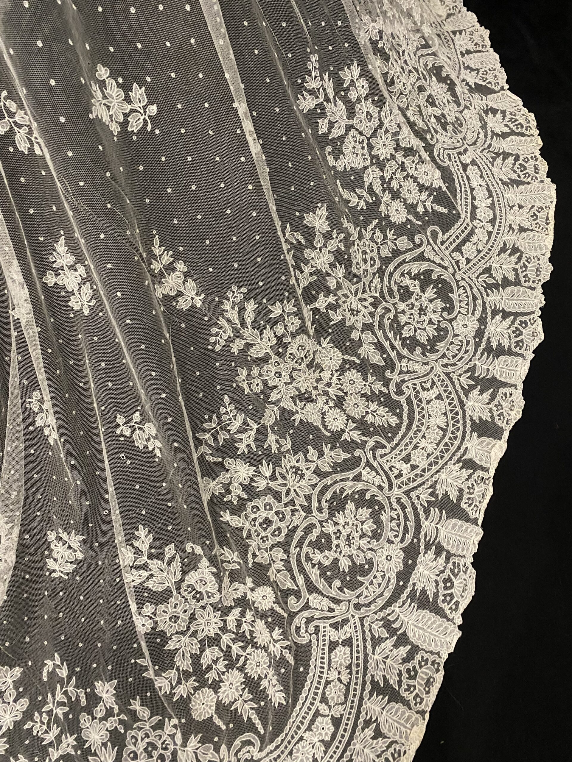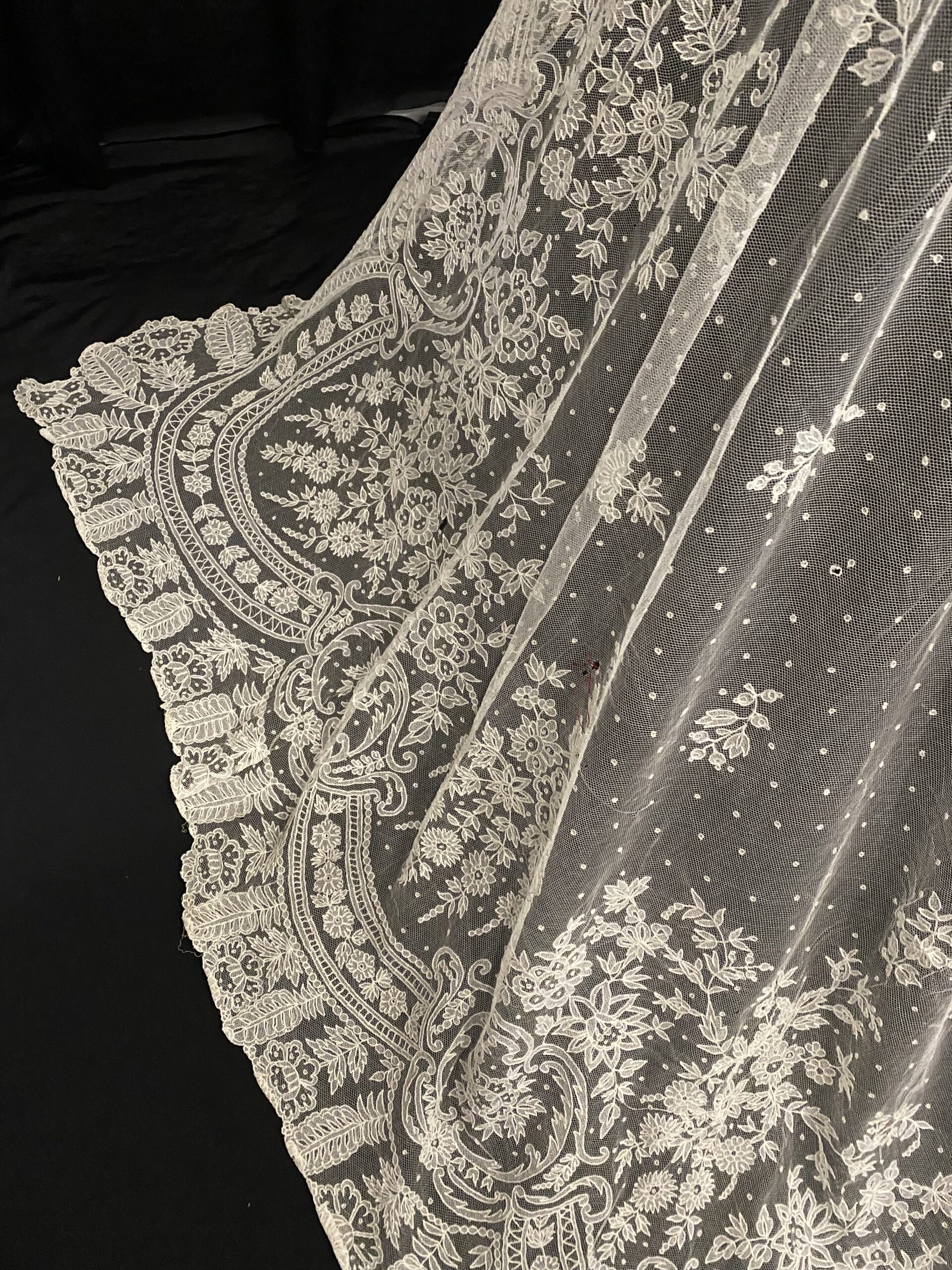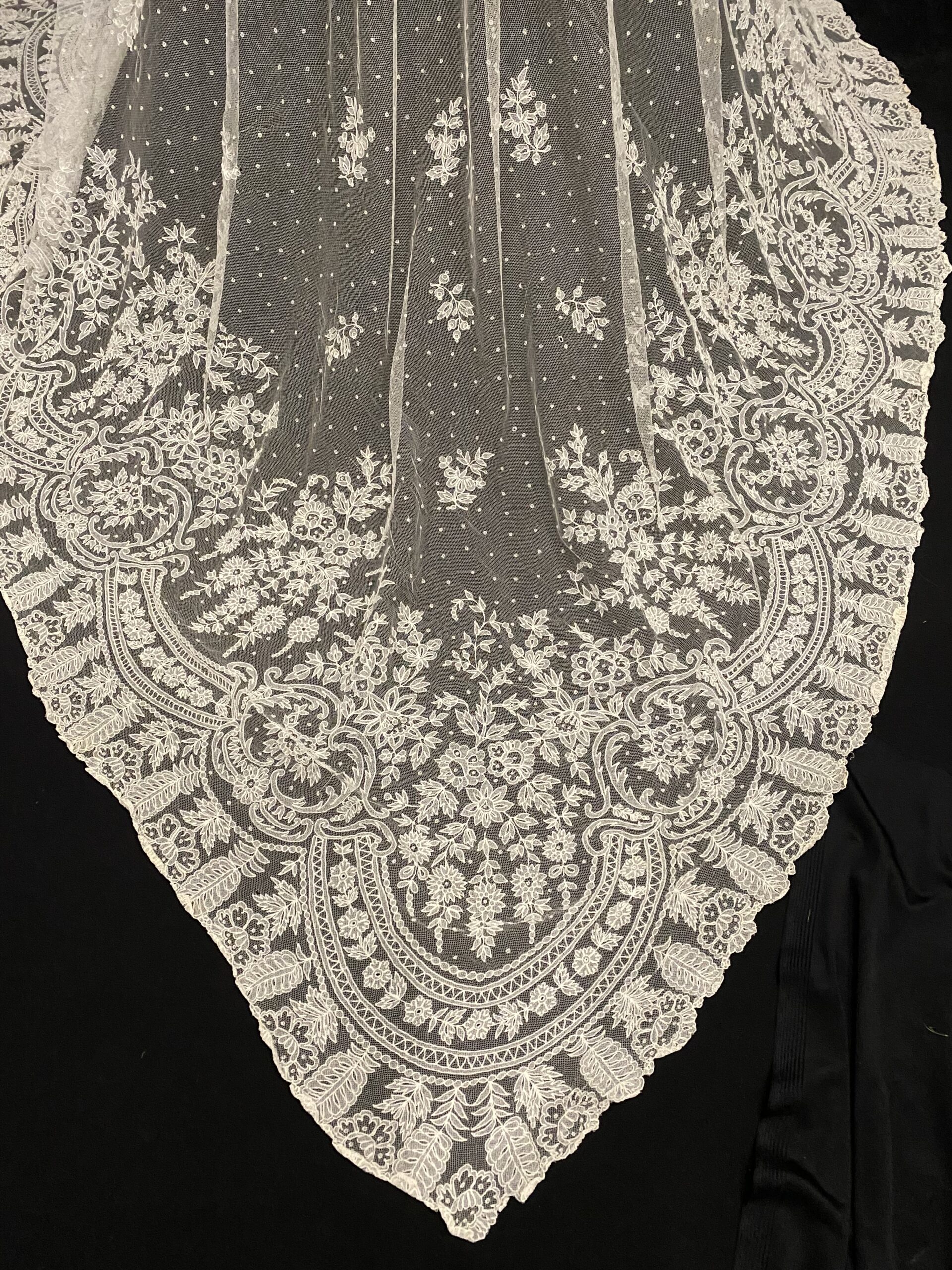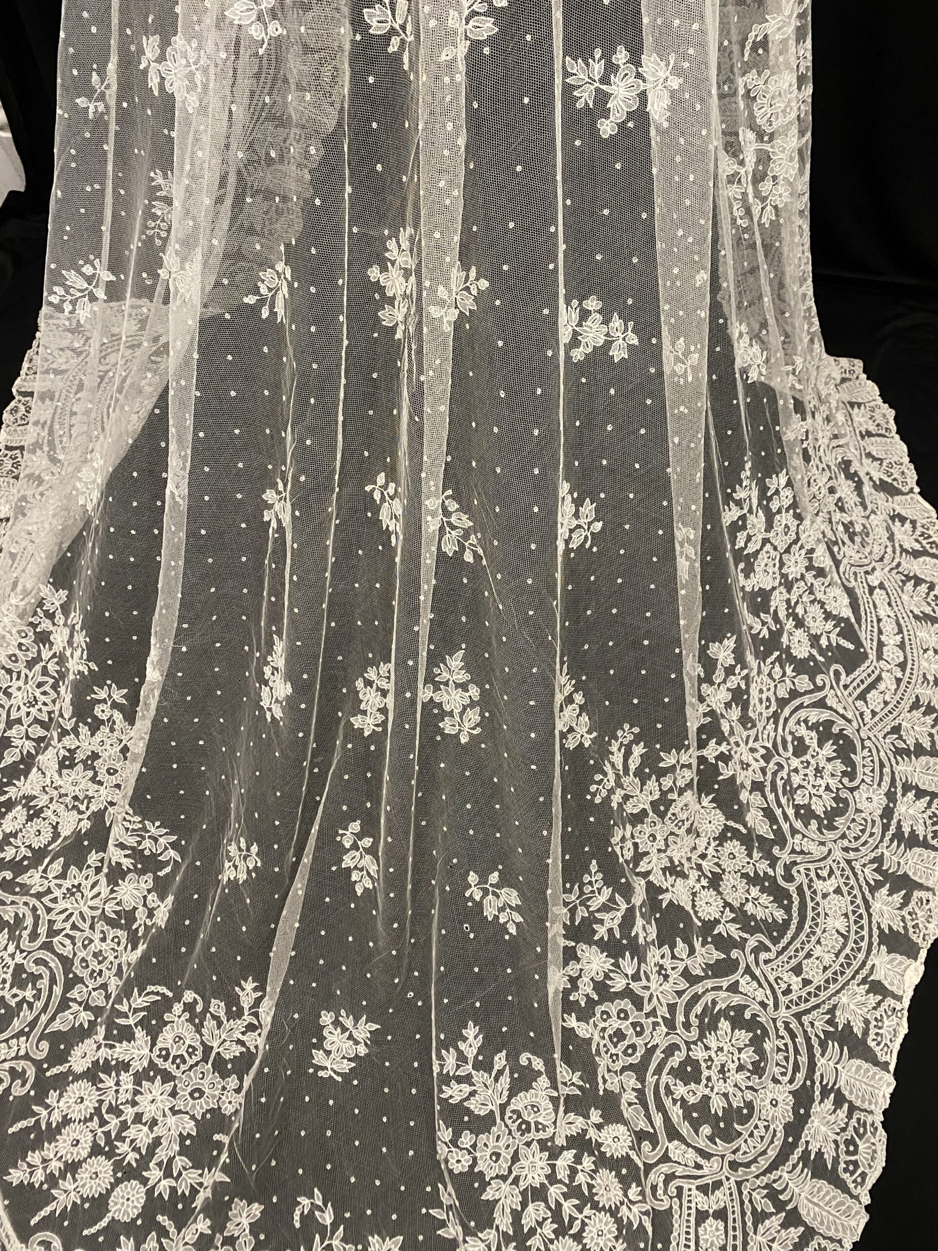 ANTIQUE LACE BRUSSELS LACE WEDDING VEIL LARGE BEAUTIFUL BORDER
